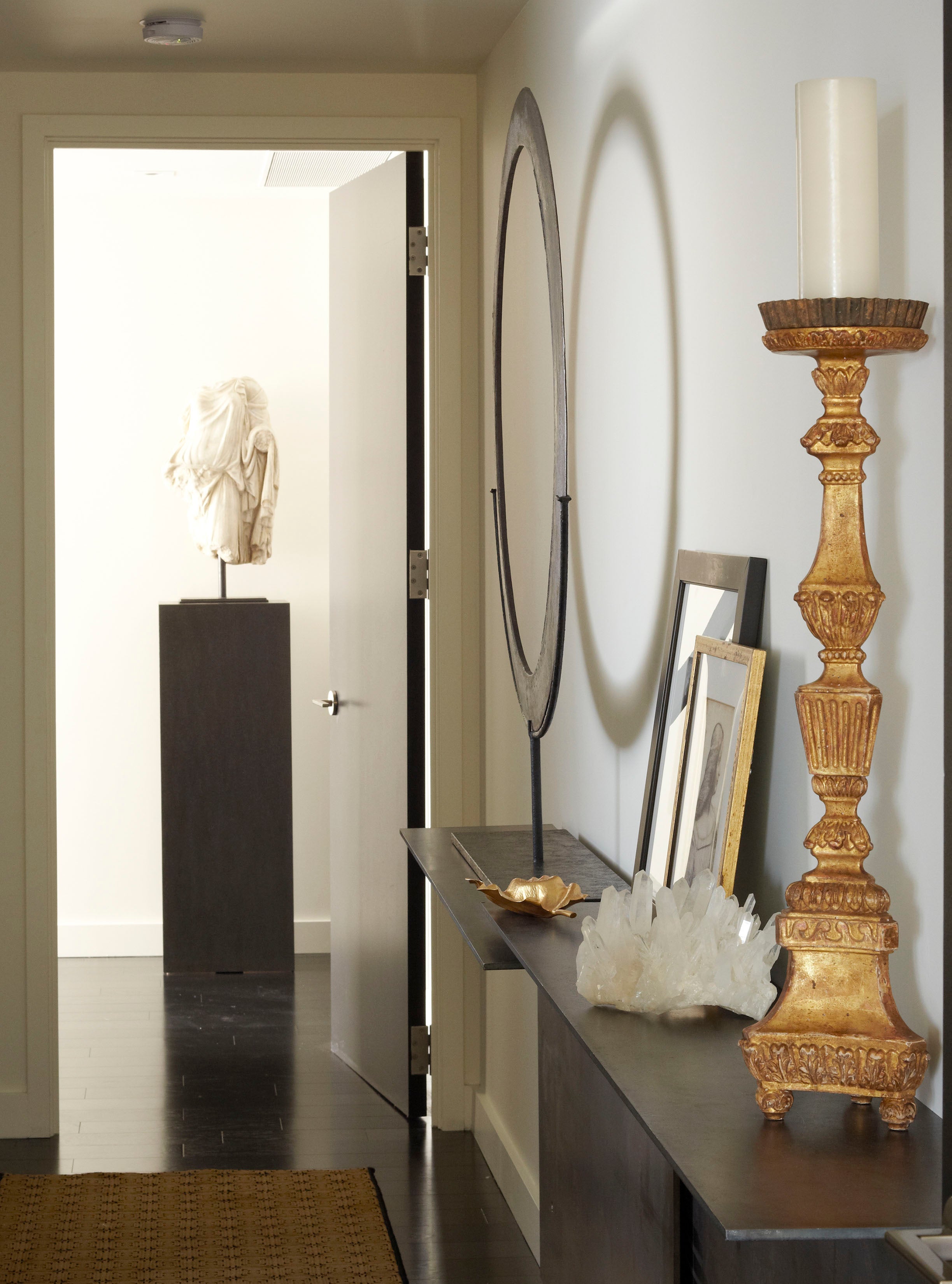 Evoking the beauty of classical antiquity, this sculptural torso features delicately rendered drapery and refined form. Mounted on a custom iron base, it transforms an architectural fragment into a museum-worthy objet d’art.