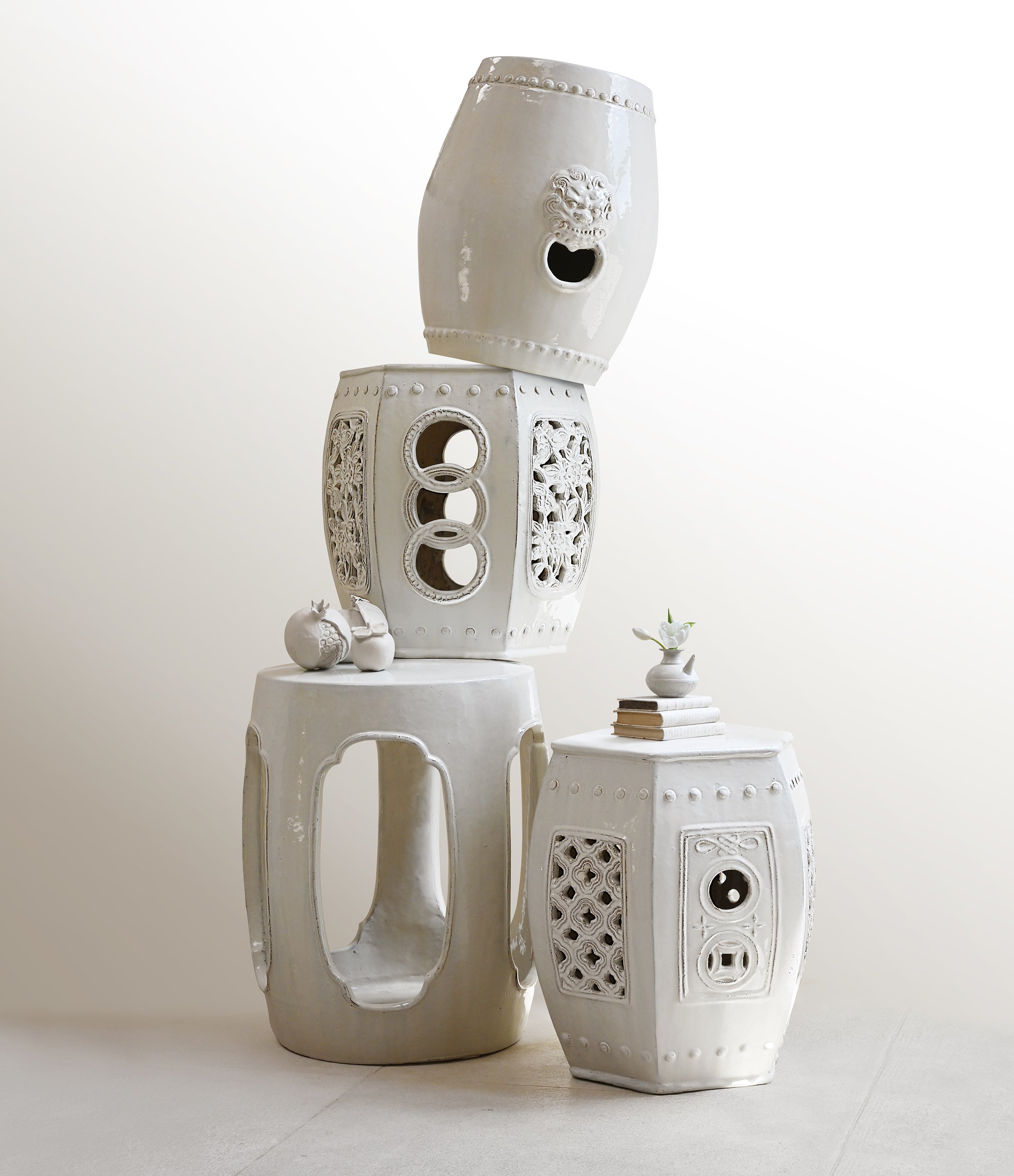 This decorative garden stool draws inspiration from traditional ceramic forms, offering sculptural charm and versatility. Suitable for indoor or outdoor use, it functions as seating, a side table, or a decorative accent. Available in two colors.