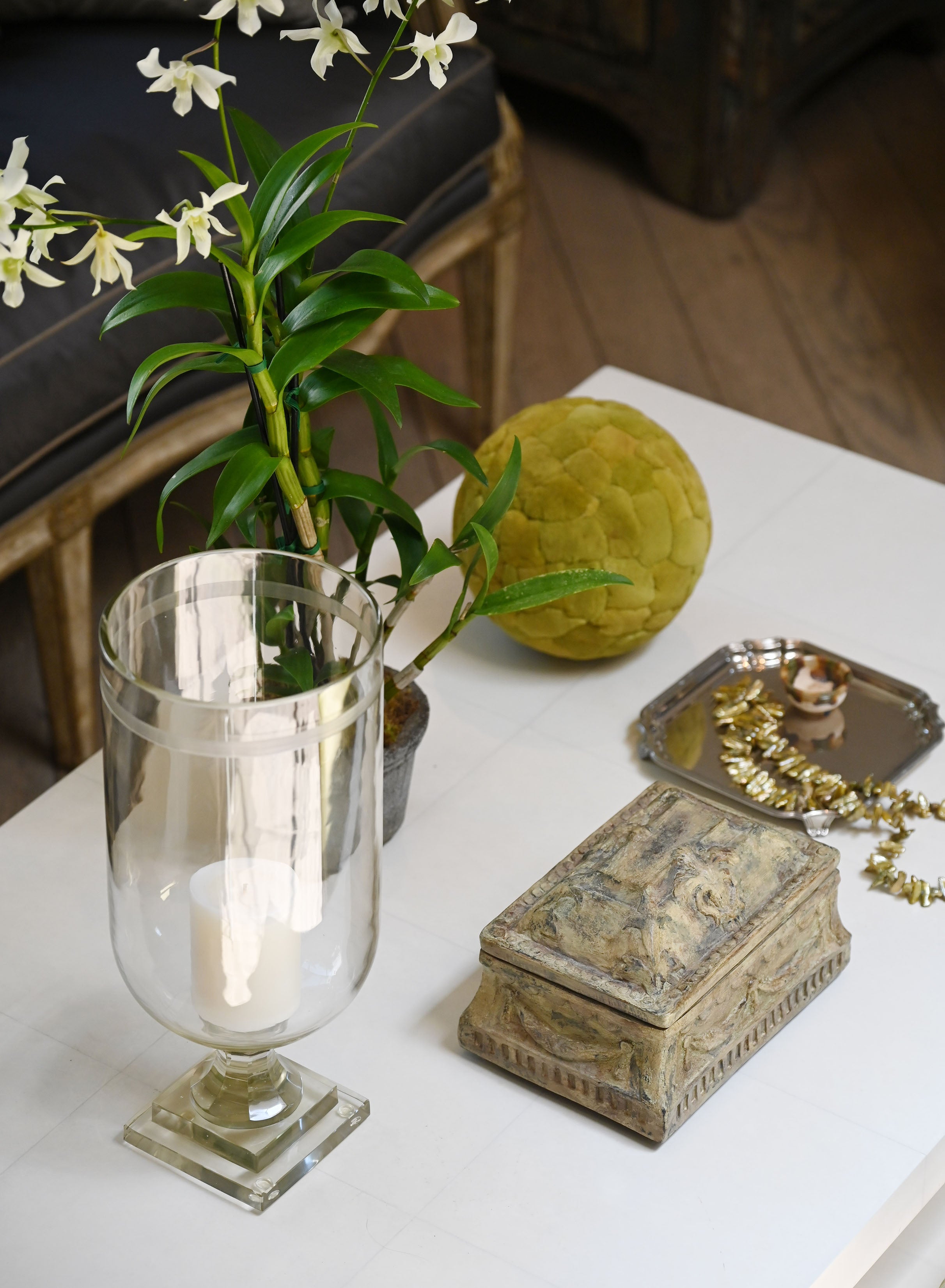 Silver Candlestick with Glass Hurricane