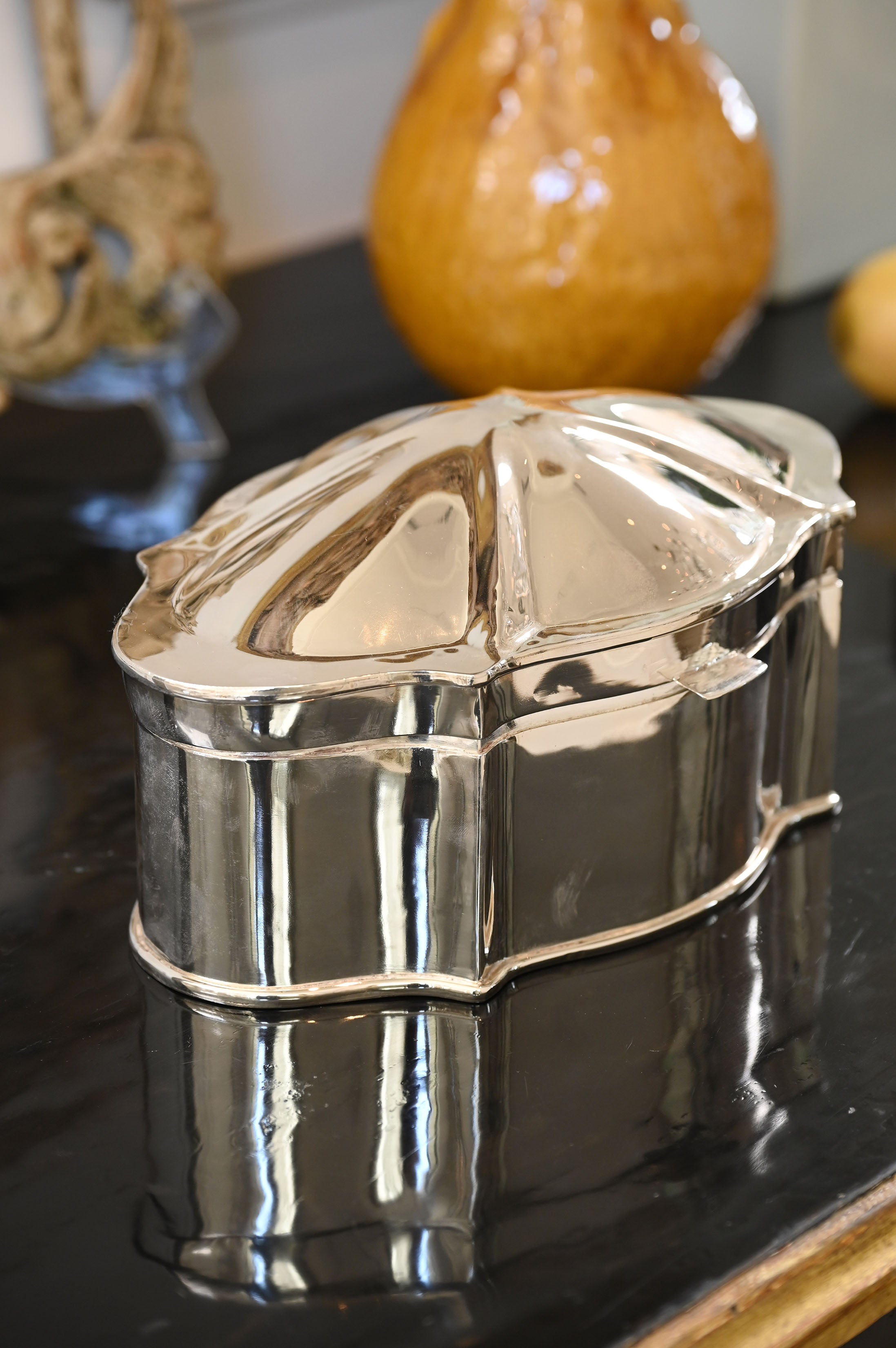 Sleek and understated, the Silver Domed Box offers functional beauty. Its smooth contours and reflective finish make it a refined vessel for treasured keepsakes.