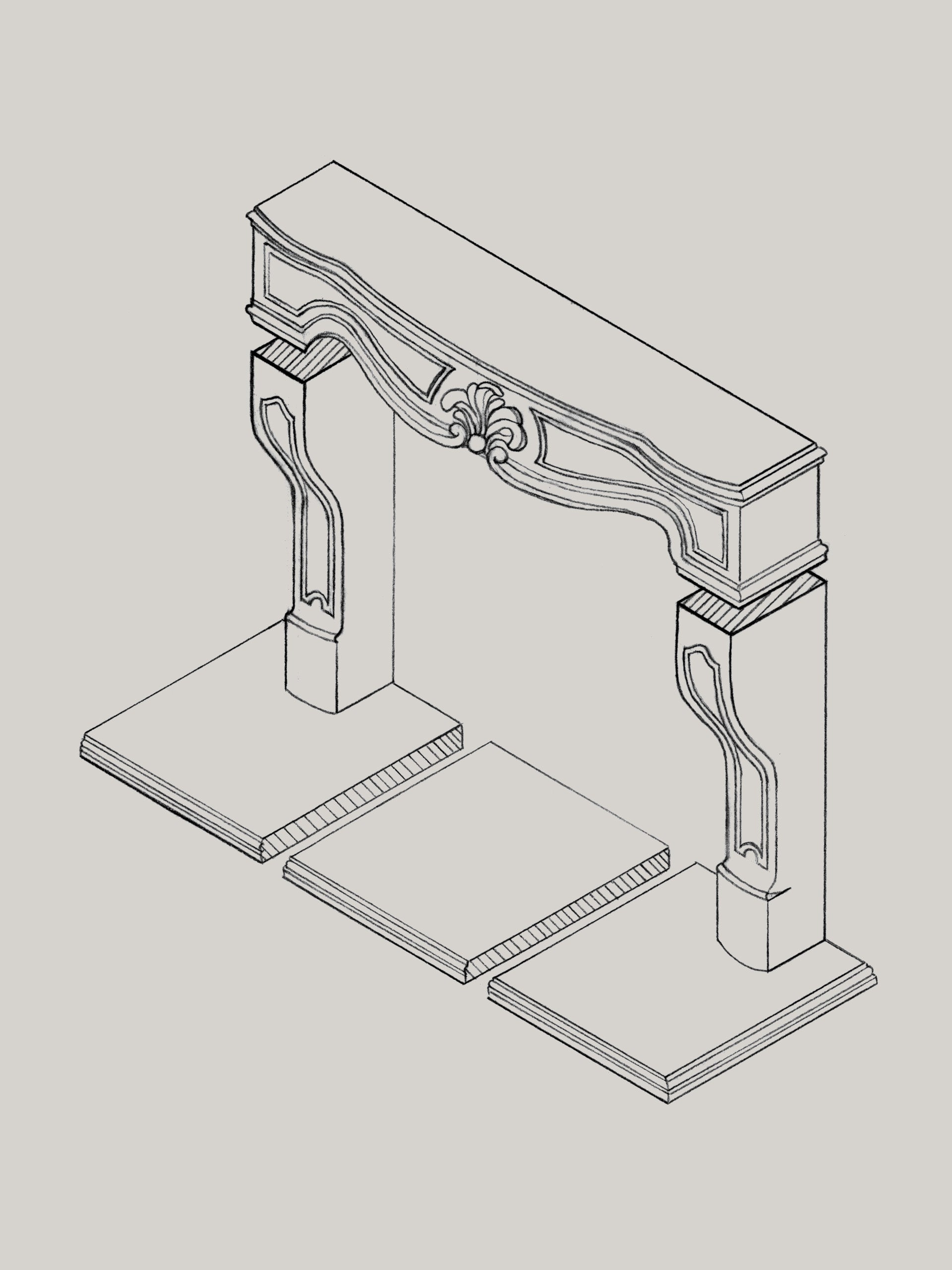 Inspired by historic French interiors, this mantle fireplace features elegant cast stonework and classical proportions. Designed as a focal point, it brings warmth, architectural beauty, and timeless refinement to living spaces.