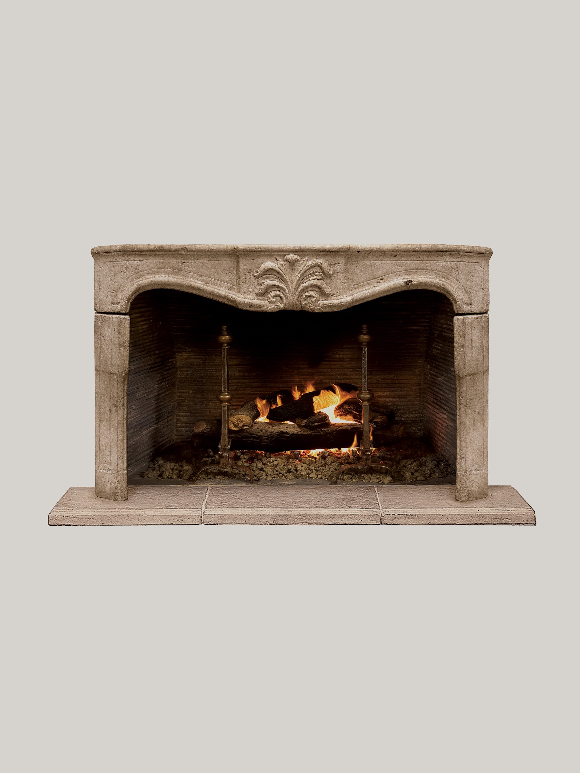 The Pierre Fireplace features a carved cast stone form that brings architectural presence and lasting character to a room. Its composed proportions create a dignified focal point that honors the hearth as both function and design.