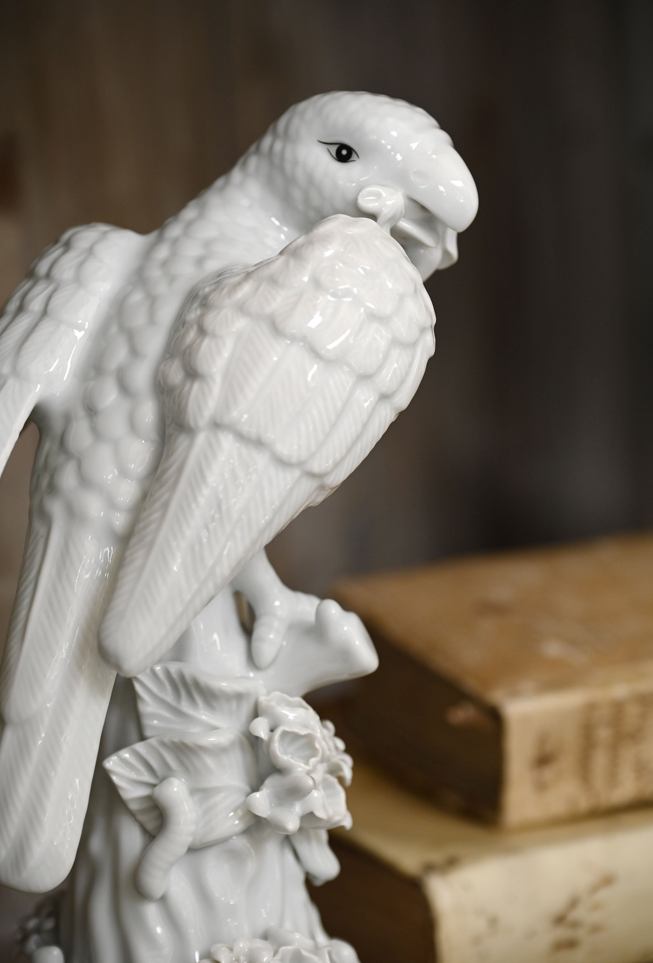 Blanc De Chine Parrots, Pair