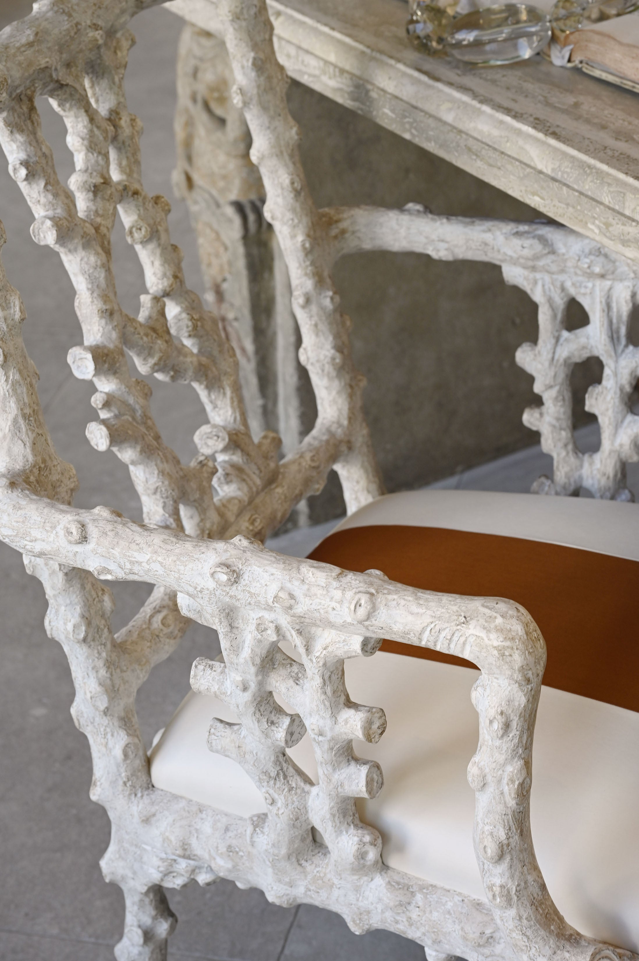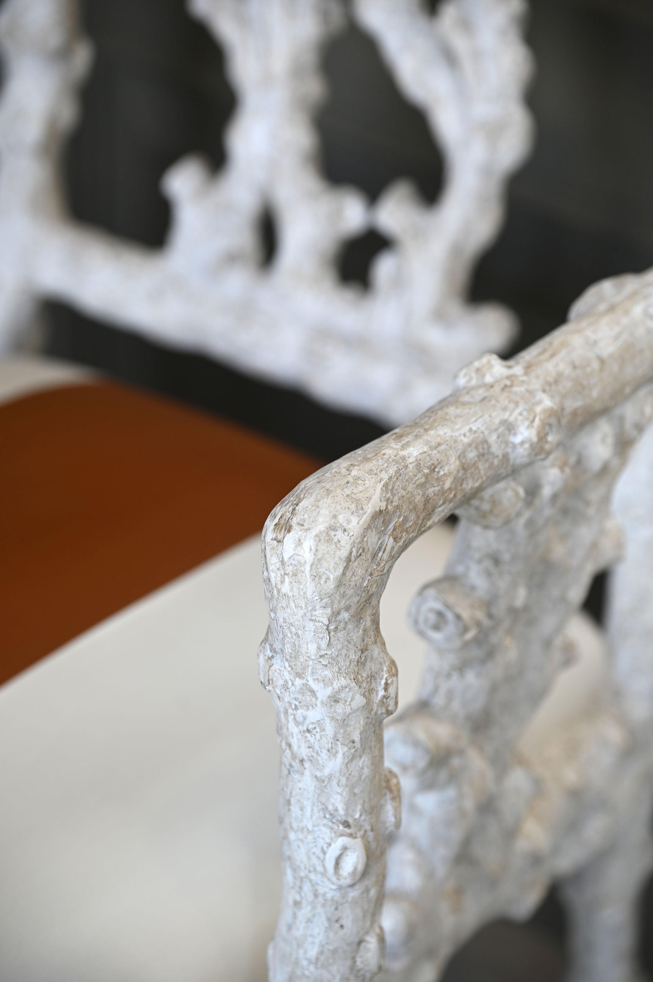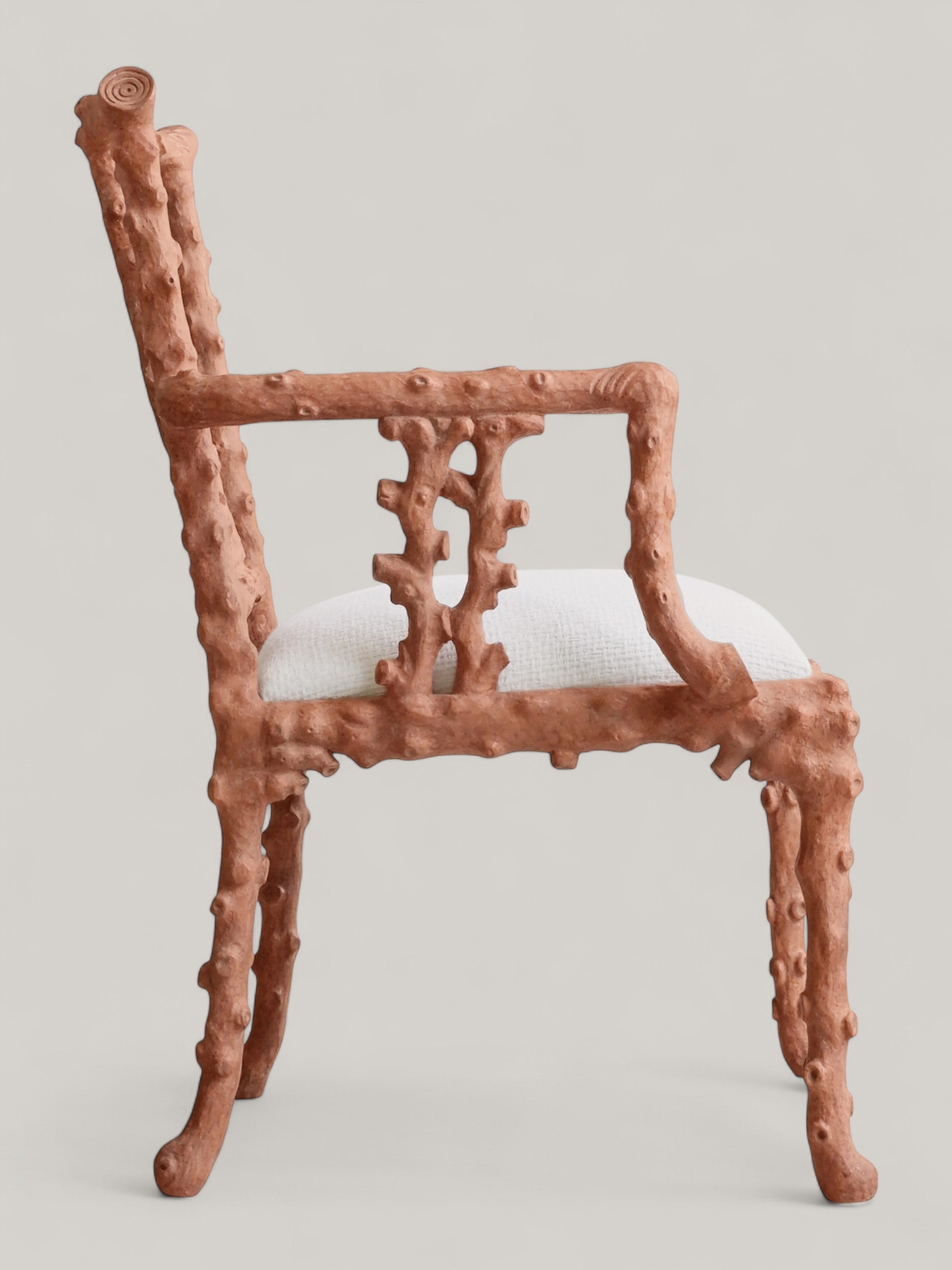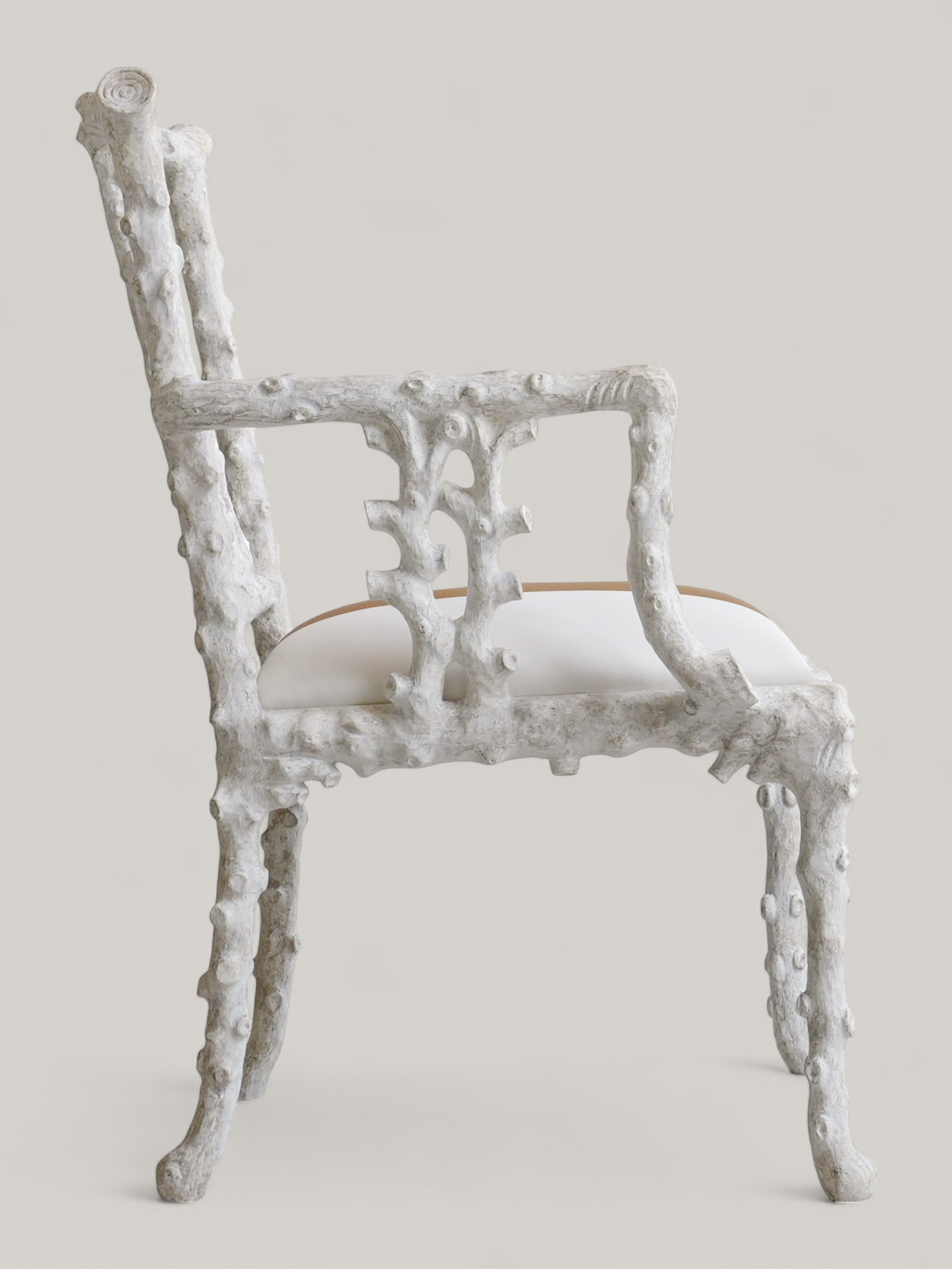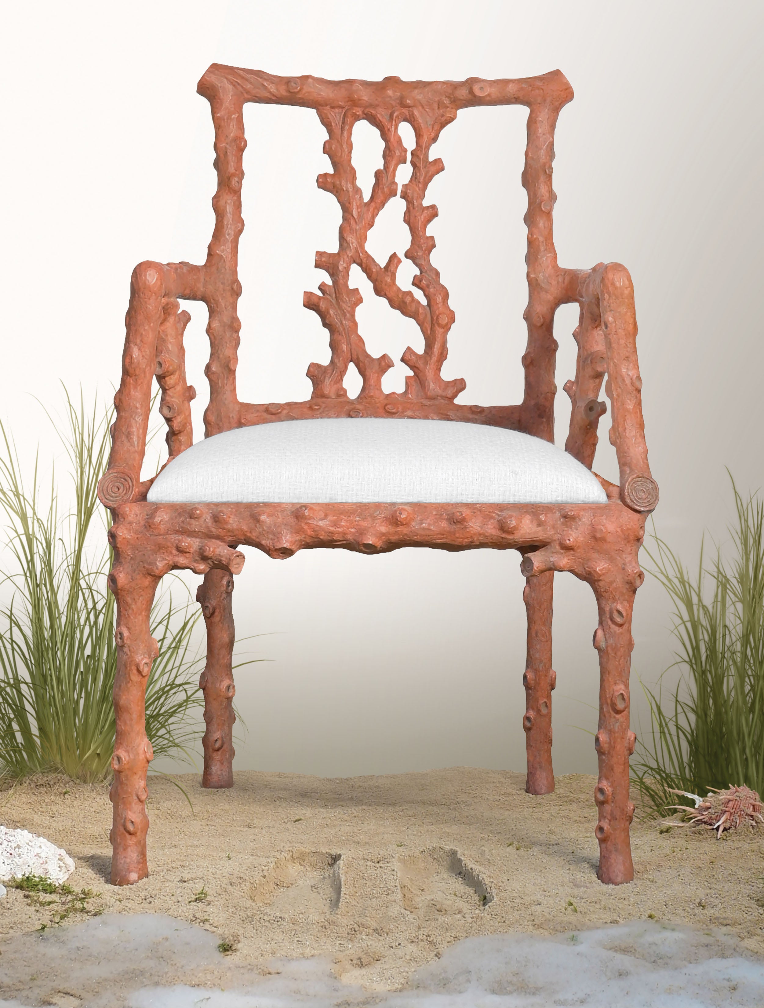 Inspired by coastal elegance, the La Mer Armchair blends sculptural form with relaxed refinement. Its carved frame and inviting seat evoke a sense of effortless luxury, ideal for sunlit rooms and serene retreats. Available in Coral or Antiqued White finish.