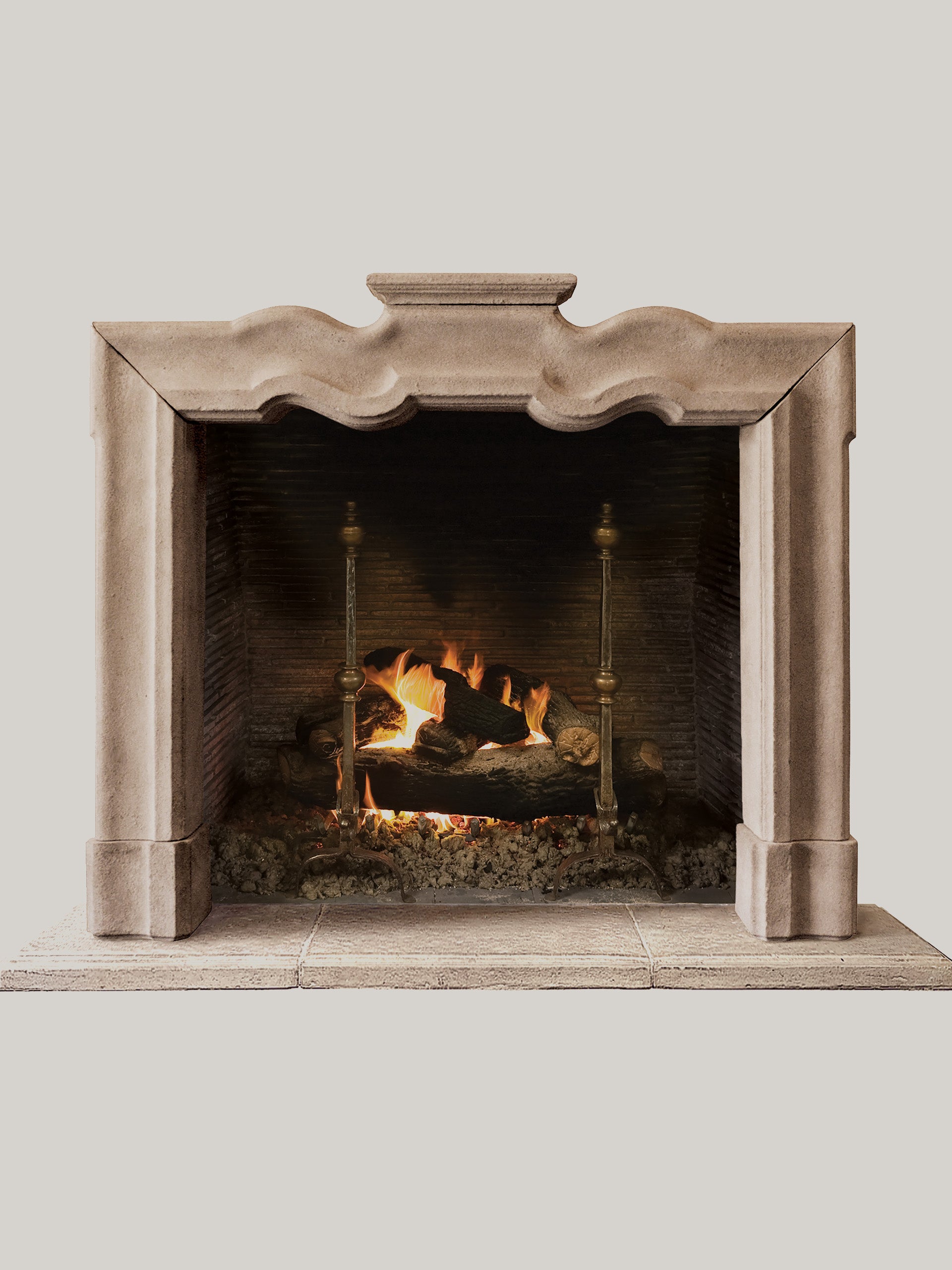 The Portuguese Fireplace exudes architectural poetry. Crafted in cast stone and shaped with classical sensibility, its sculpted presence transforms the hearth into a focal point of elegance, history, and enduring warmth.