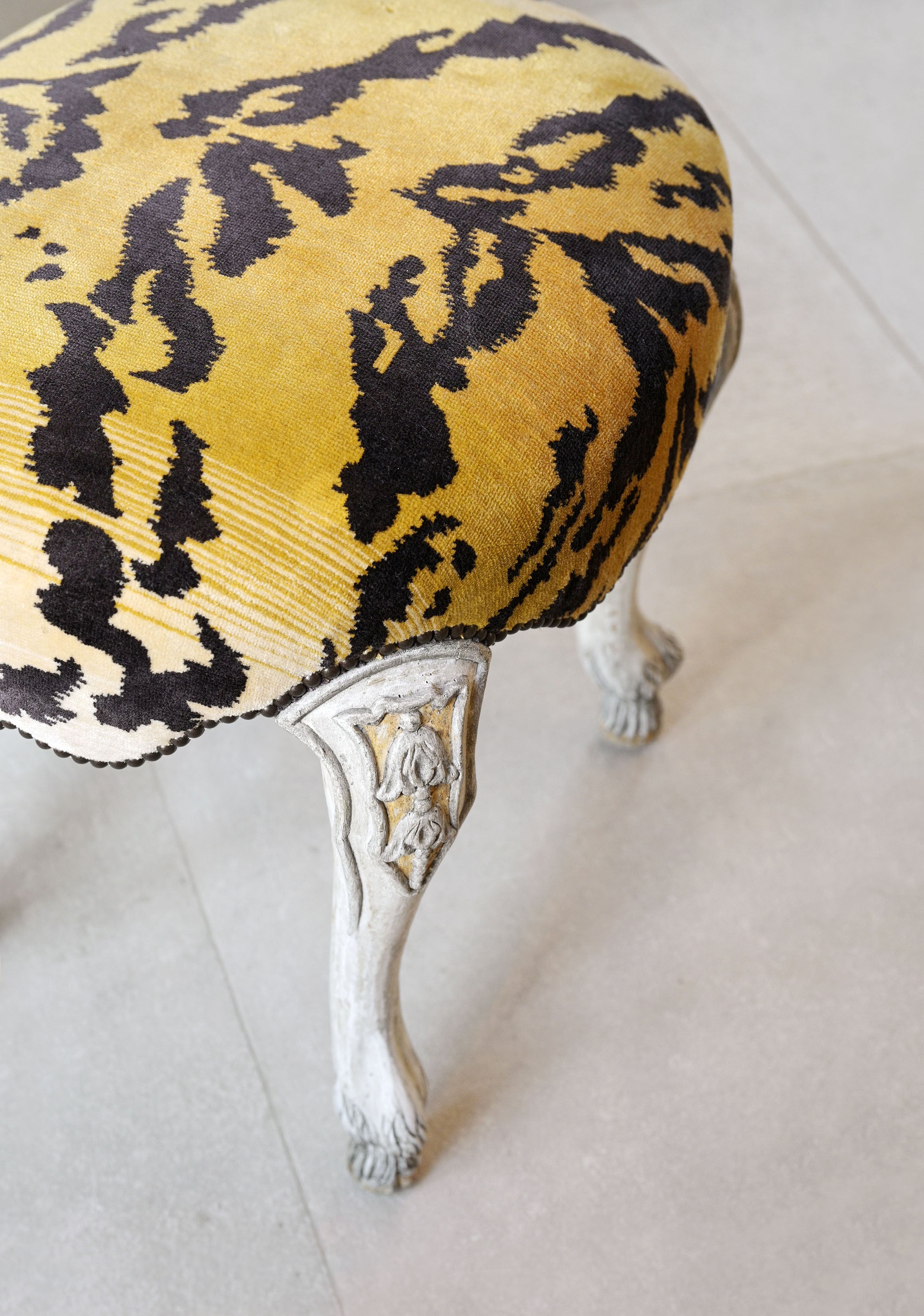 The Baxter Ottoman pairs sculptural legs with a refined upholstered top, offering both function and visual interest. Its compact scale makes it a versatile accent—perfect as a footrest, additional seating, or a decorative layering piece.