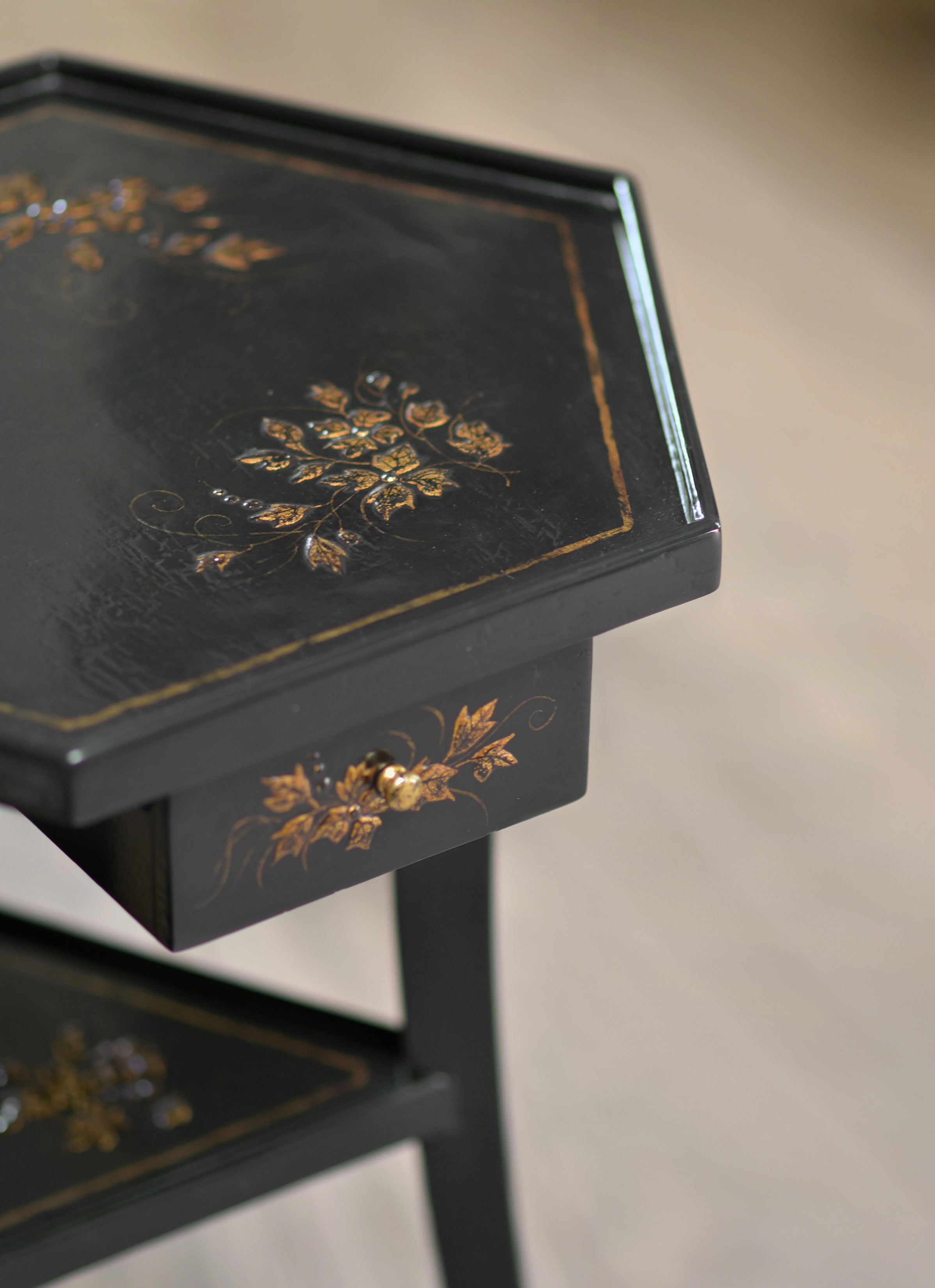 Finish: Antiqued Black Lacquer w/gilt ChinoiserieOne drawerShipping available via UPS