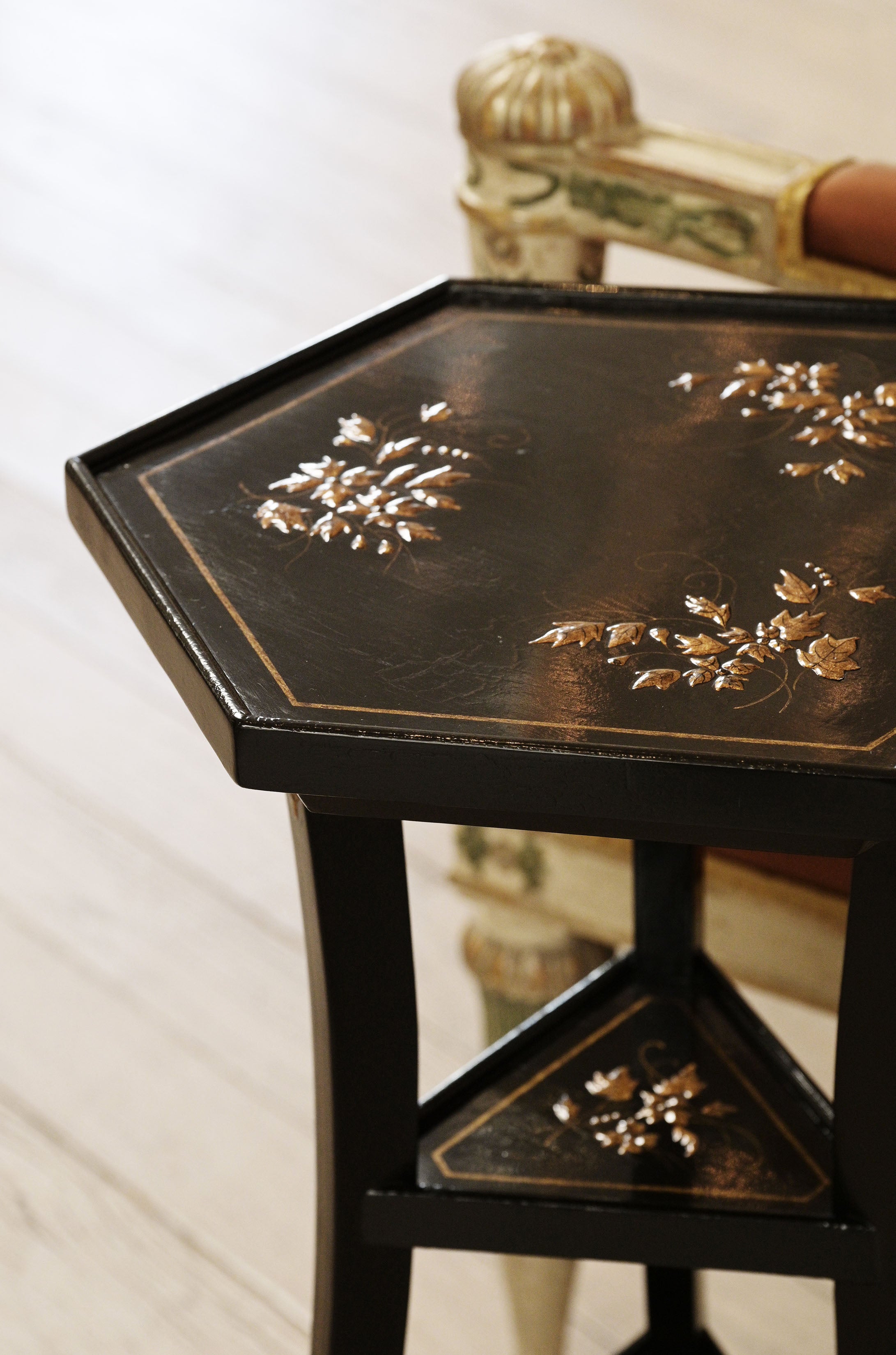 Drawing from traditional Chinoiserie design, this hexagonal table presents a sculptural form enriched with refined detailing. Its graceful silhouette and ornamental character create an elegant accent that brings depth and visual intrigue to thoughtfully curated interiors.