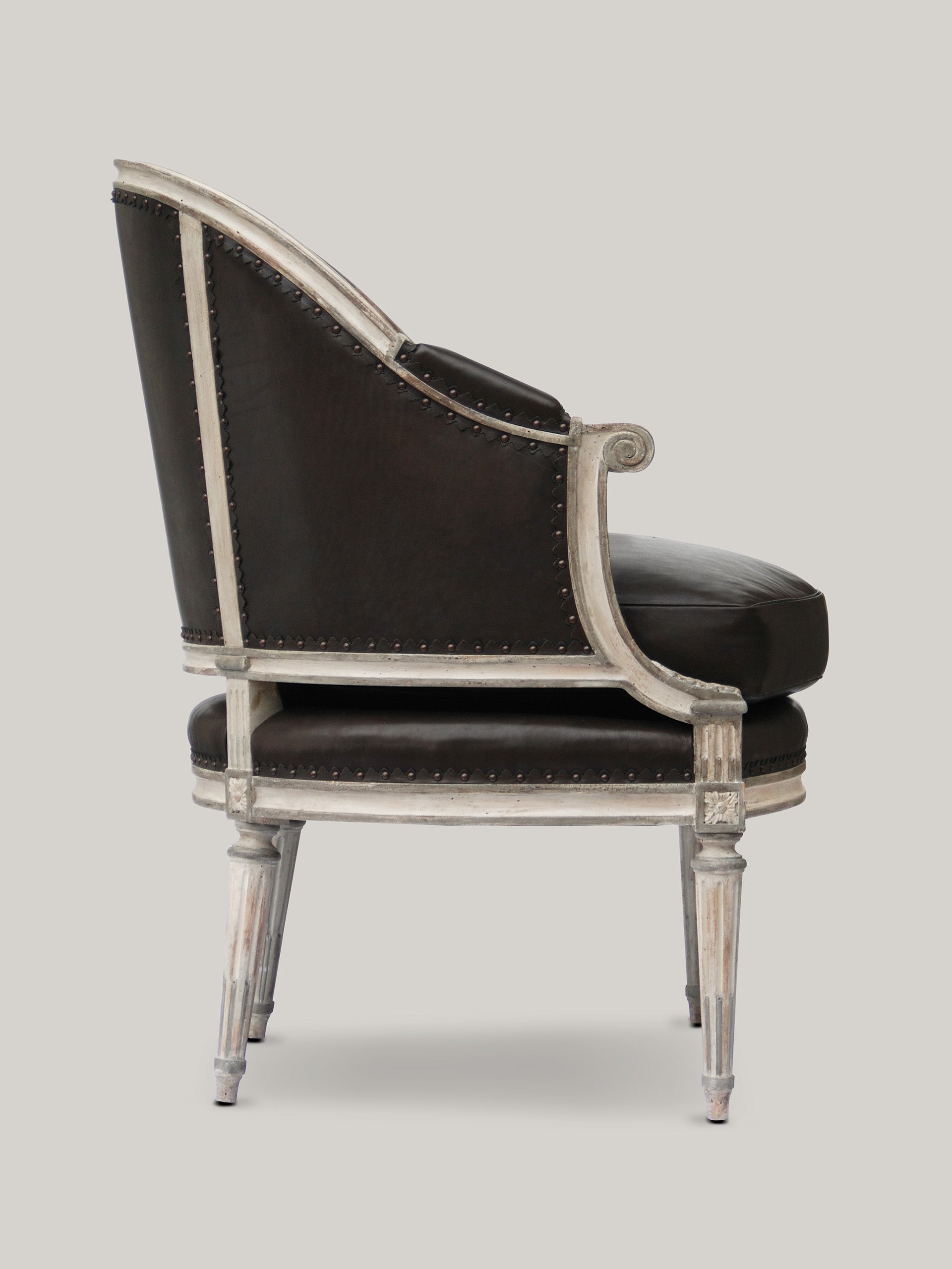 This hand-painted armchair embodies understated luxury and refined craftsmanship. Its gracefully curved frame is finished in a softly aged palette that highlights the chair’s sculptural lines and artisanal detailing. Balanced proportions and subtle ornamentation make this chair a versatile statement piece—where comfort meets timeless sophistication.