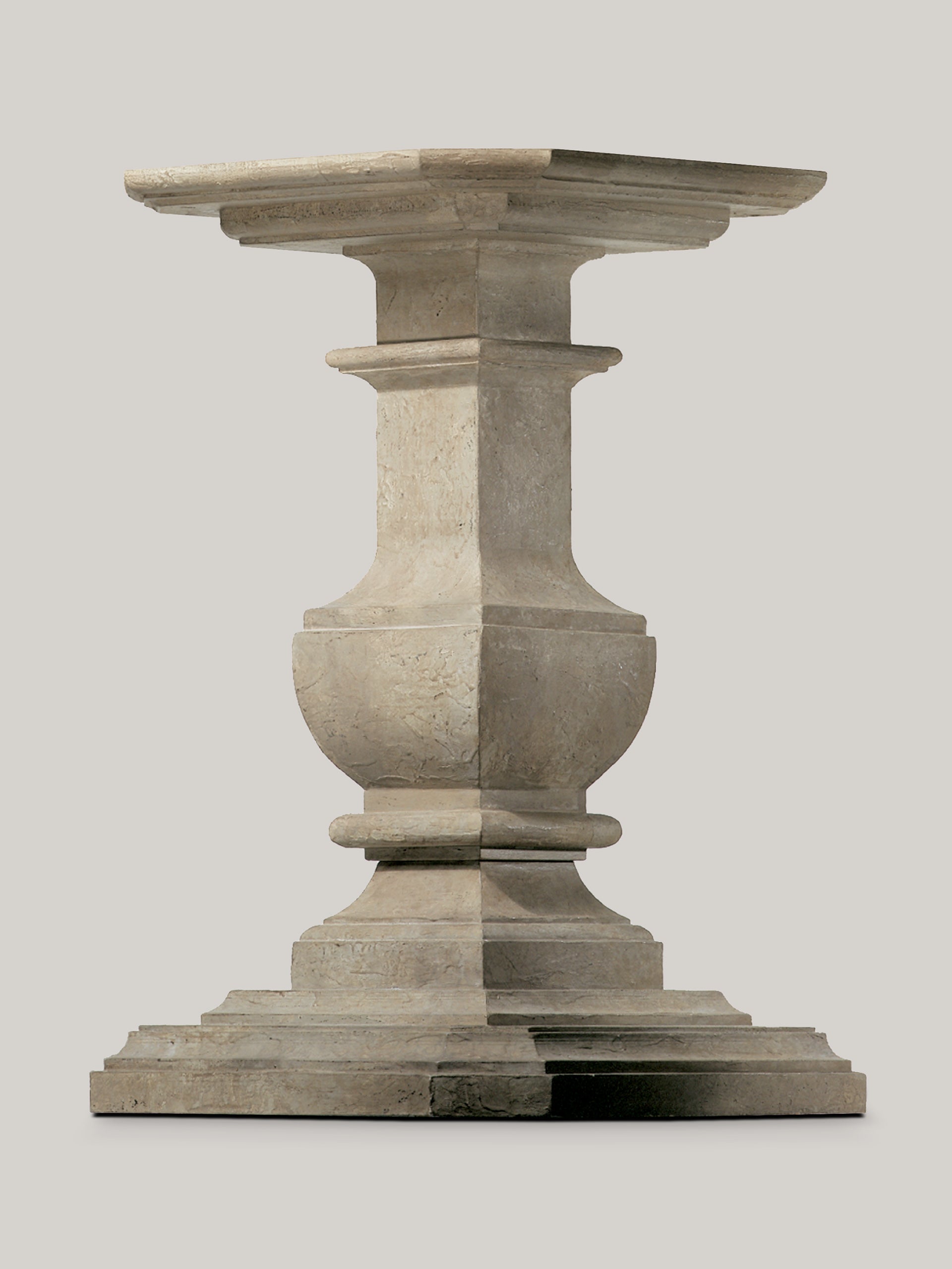 Drawing inspiration from classical stone balustrades, this wood table base offers sculptural strength and architectural beauty. Its refined form anchors a room with quiet grandeur, making it a striking centerpiece in both traditional and contemporary interiors. Top sold separately.