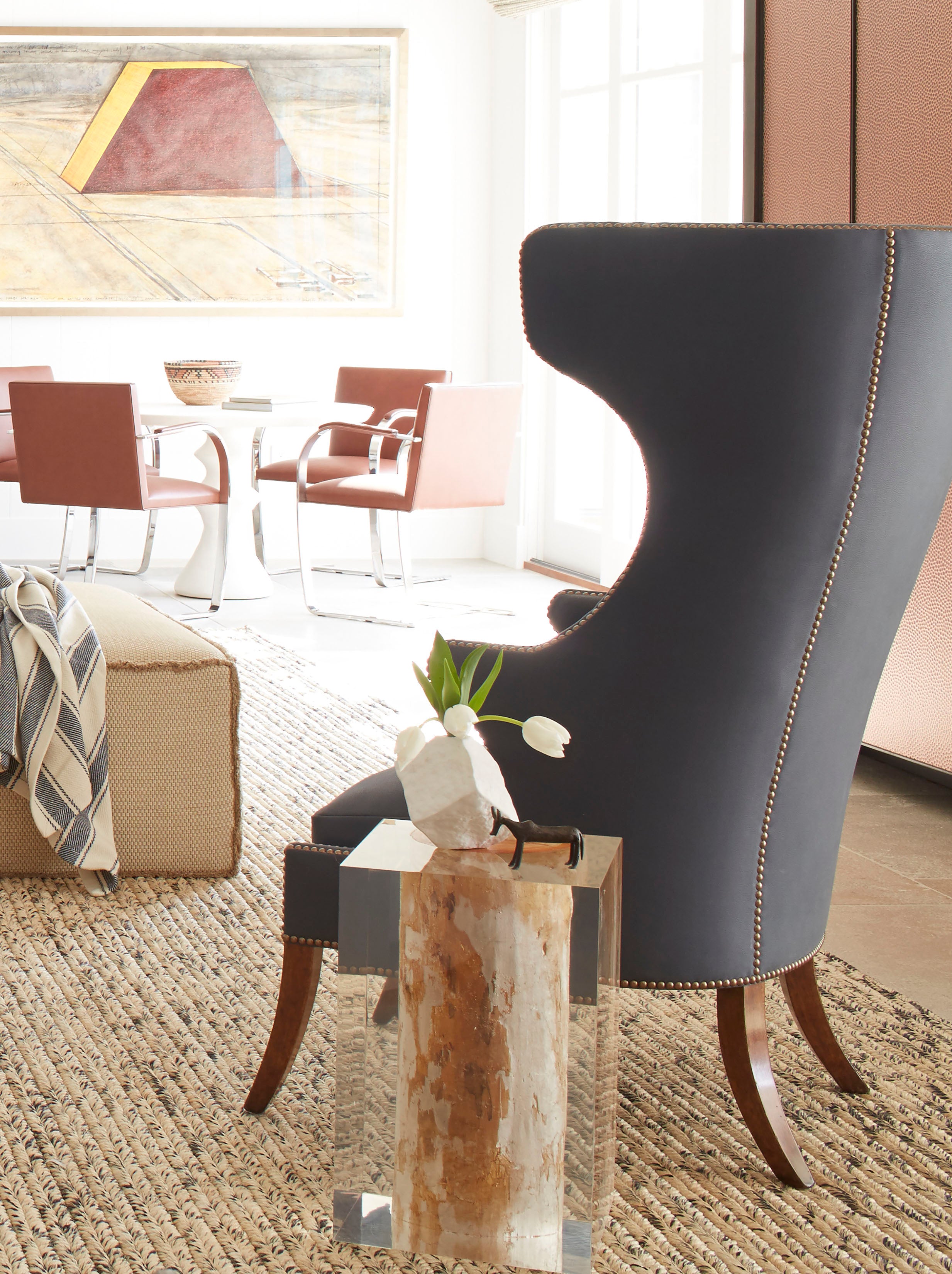 A classic English wing chair elevated by a tall, commanding back and elegantly flared wings. Designed to envelop and support, this piece offers timeless comfort while anchoring rooms with traditional sophistication.