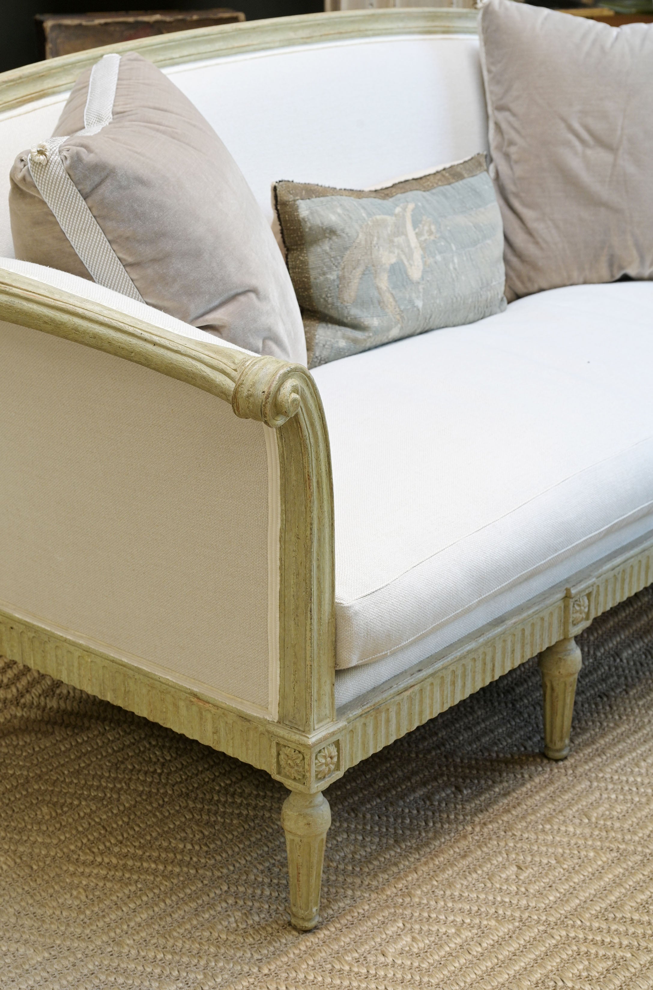 The Lancaster Settee combines classic comfort with refined craftsmanship. Its gentle curves and elegant stance create a welcoming presence, perfect for drawing rooms, libraries, or gracious entryways.